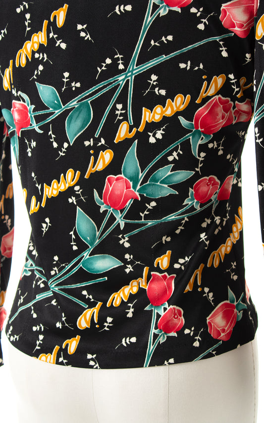 1970s "A Rose Is A Rose" Gertrude Stein Novelty Print Blouse | small/medium