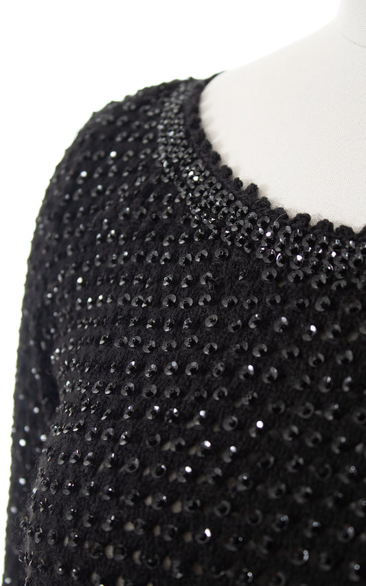 1950s GENE SHELLY Beaded Sequin Knit Wool Sweater Dress | small/medium
