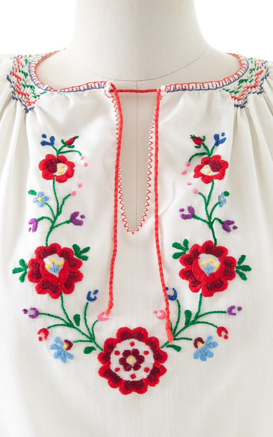 1970s Floral Embroidered Peasant Top | medium