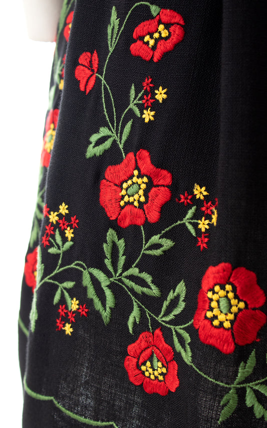 1970s Floral Embroidered Dirndl Dress | small