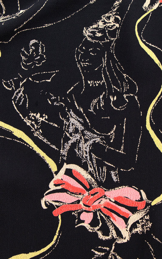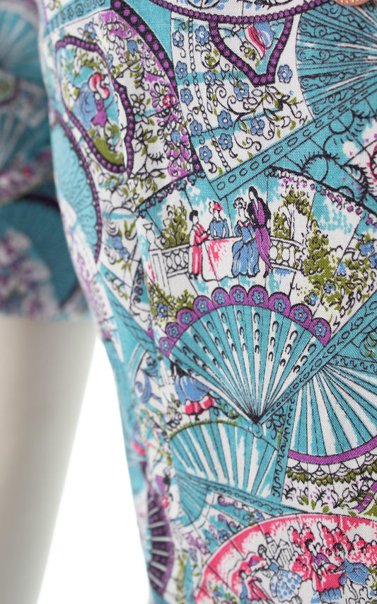 1960s Fans 17th C Novelty Print Wiggle Dress | medium