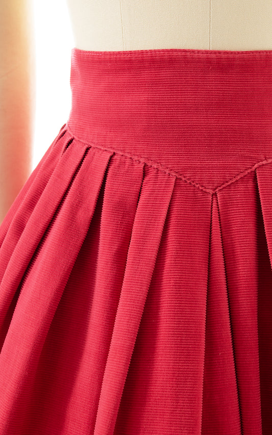 1950s Pink Corduroy Basque Waist Skirt | small