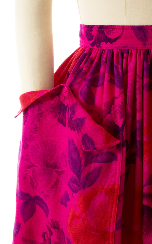 1980s ESCADA Floral Wool Midi Skirt | small