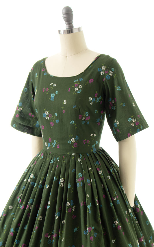 1950s Forest Green Floral Dress | small
