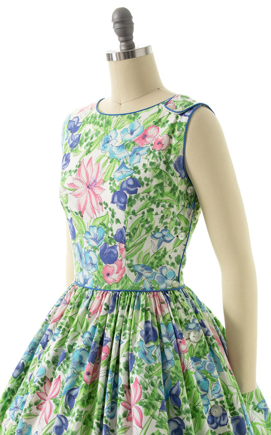 1950s Side-Button Floral Sundress | x-small/small