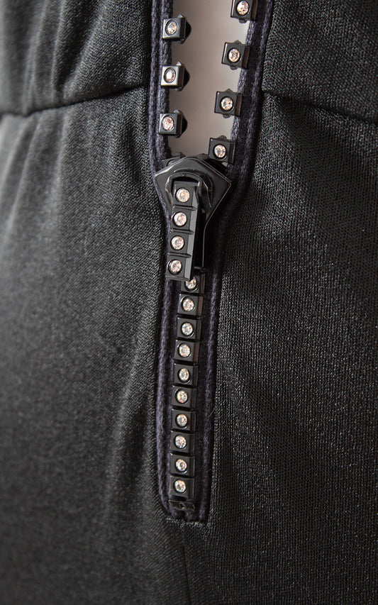 1970s Rhinestone Zipper Jersey Jumpsuit | small/medium/large