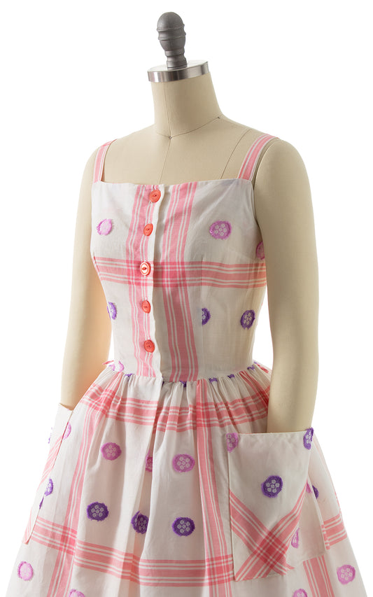 1950s Polka Dot Plaid Sundress with Pockets | small