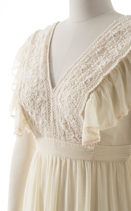 1970s Floral Crochet & Ruffled Maxi Dress | small