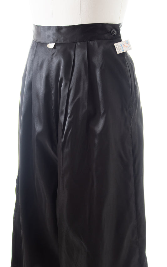 1940s Deadstock Black Satin Wide Leg Pants | small