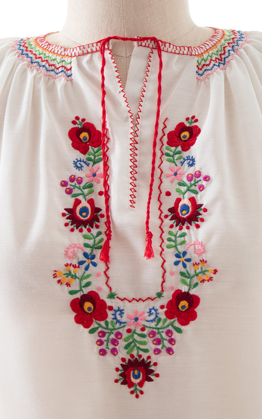1970s Floral Embroidered Crochet Dress | medium/large/x-large