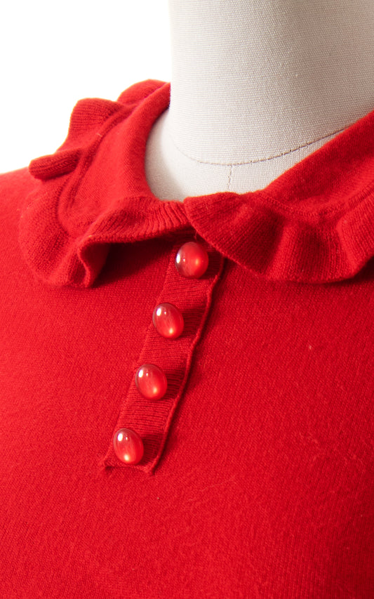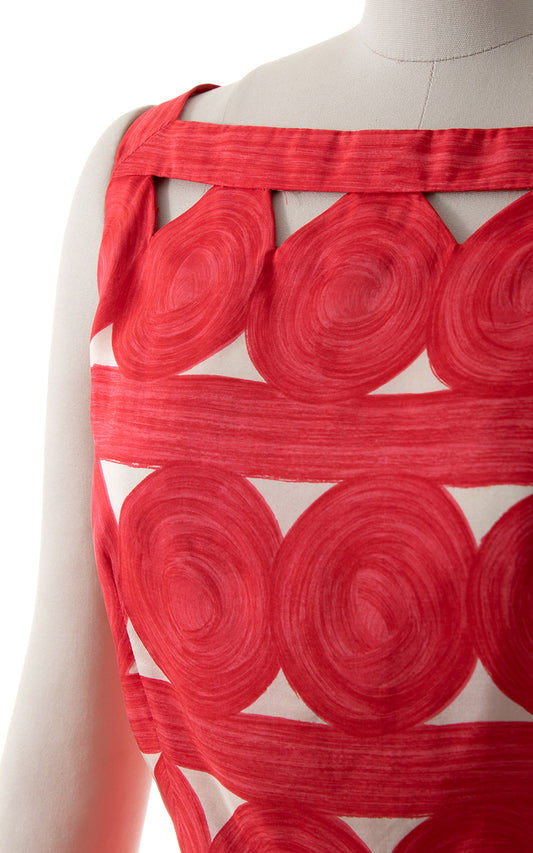 1950s Cutout Polka Dot Silk Sheath Dress | medium