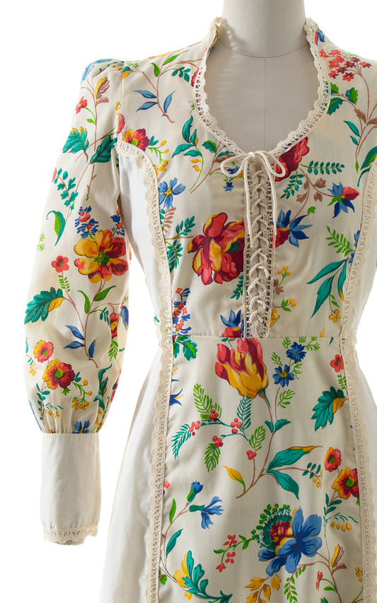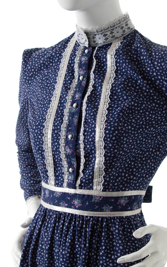 1970s Gunne Sax Style Floral Prairie Dress | small/medium