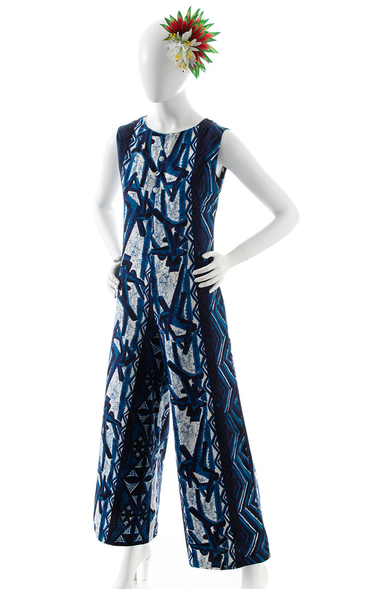1960s 1970s Tiki Wide Leg Jumpsuit | small