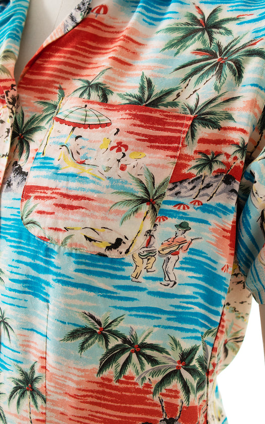 1940s Hawaiian Novelty Print Rayon Blouse | small/medium