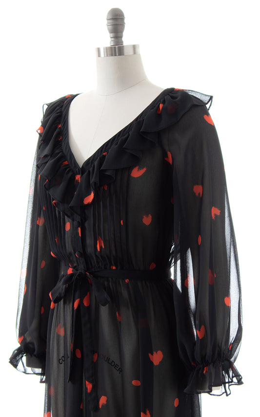 1970s Albert Nipon Hearts Sheer Ruffled Shirt Dress | small/medium/large
