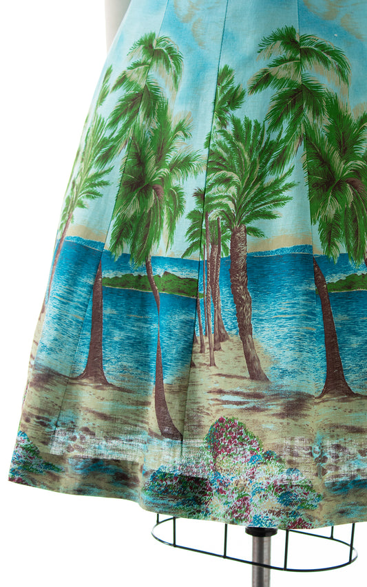 1950s Beach Novelty Border Print Sundress | small/medium