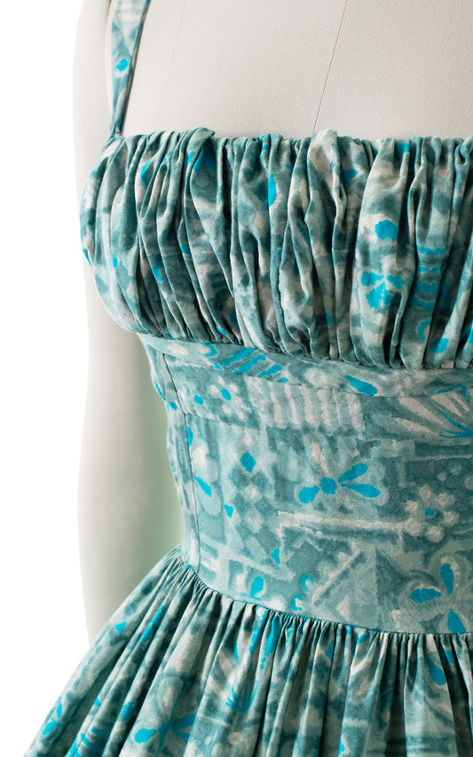 1950s Tiki Print Gathered Bust Sundress | small