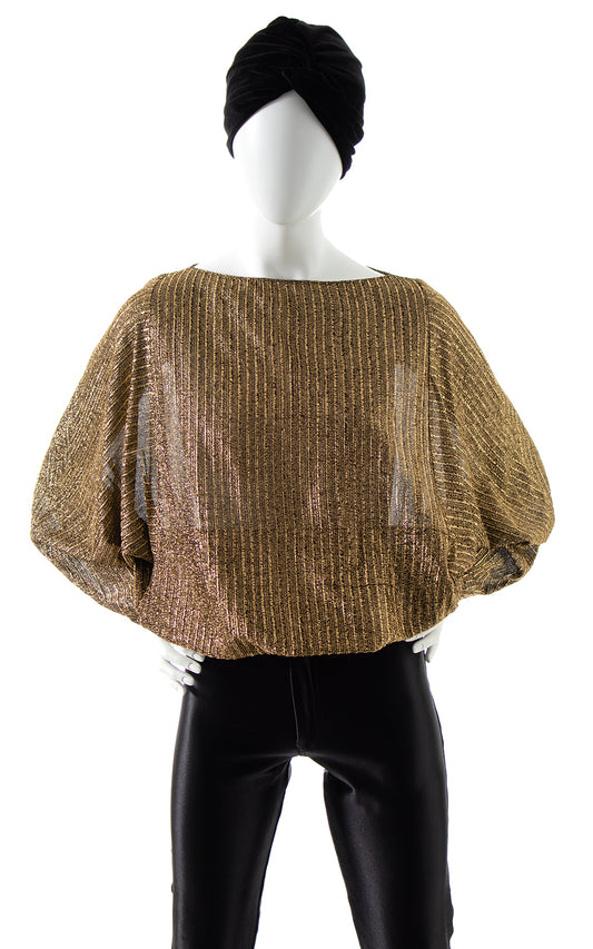 1970s Metallic Gold Dolman Sleeve Blouse with Pockets | small/medium