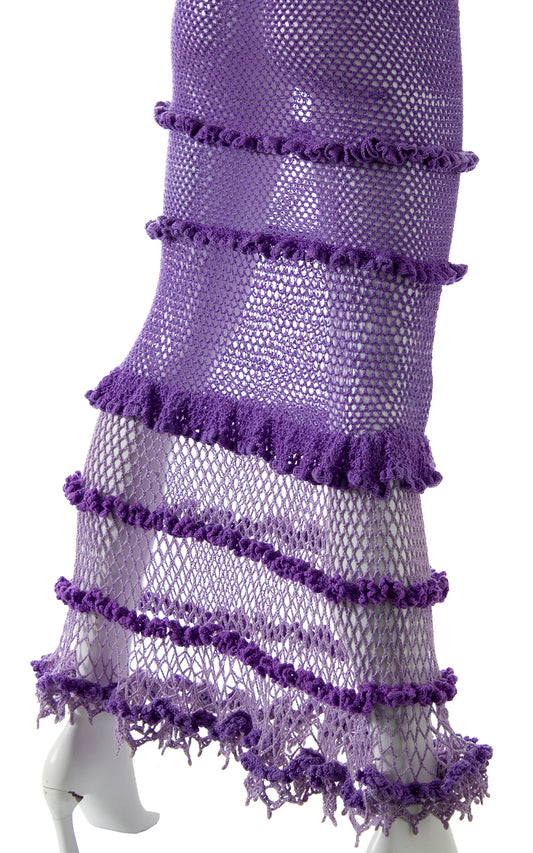 1970s Ruffled Crochet Maxi Dress | x-small/small