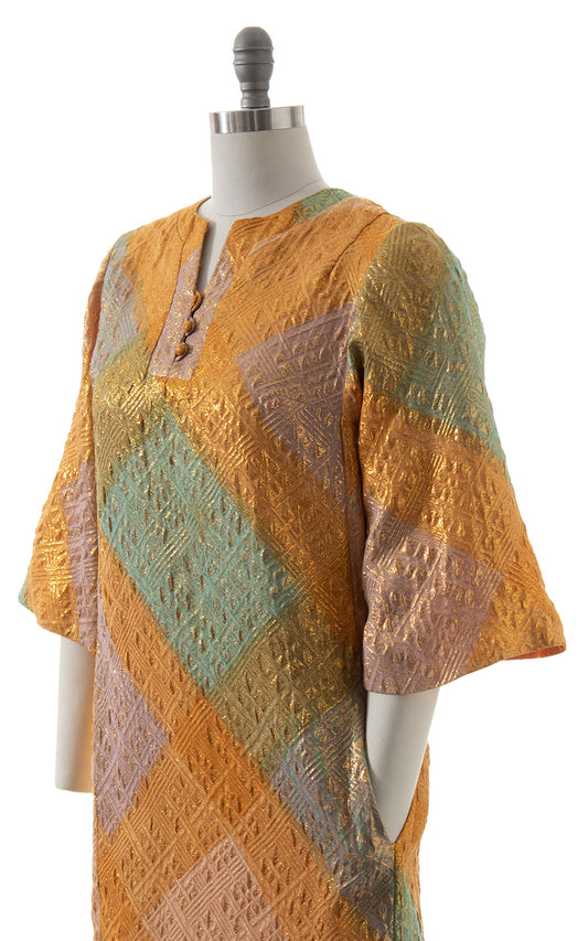1960s Metallic Squares Maxi Dress with Pockets | small/medium