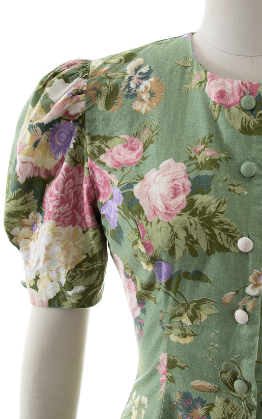 1980s Karin Stevens Rose Puff Sleeve Blouse | small