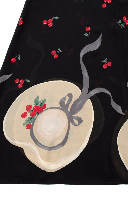 1980s Sun Hats & Cherries Novelty Border Print Dress | large