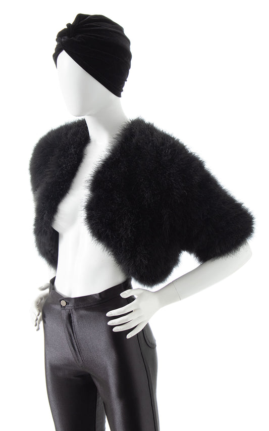 1960s 1970s Black Marabou Shrug | x-small/small/medium