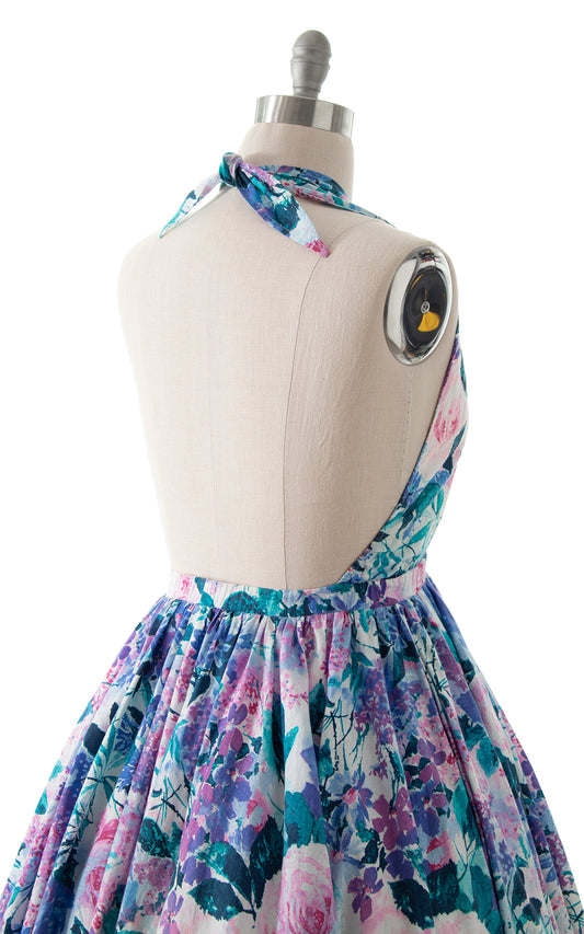 1980s Floral Halter Circle Skirt Sundress with Pockets | x-small/small/medium