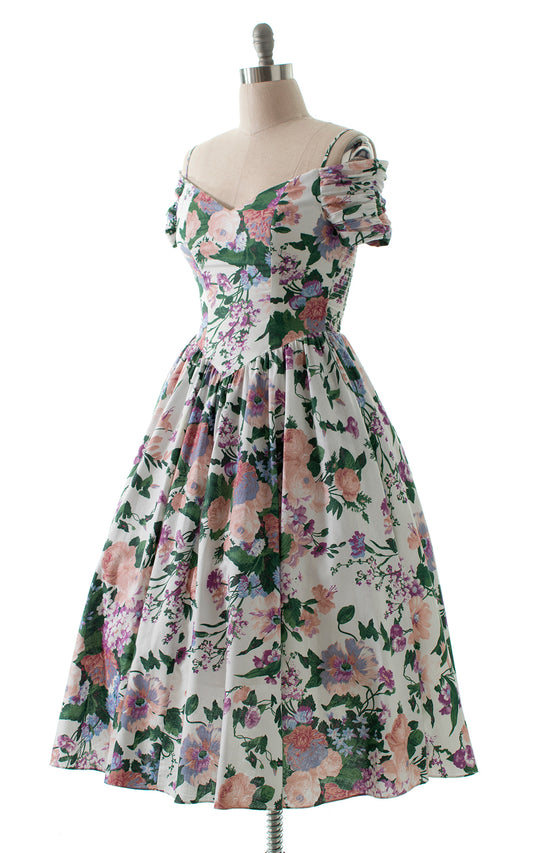 1980s Off The Shoulder Floral Sweetheart Dress with Pockets | small/medium/large