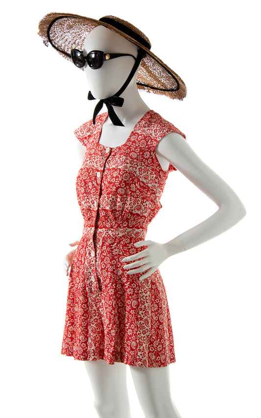 1940s Floral Striped Cotton Playsuit Set | x-small/small