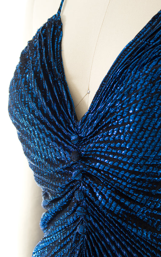1980s Travilla Style Metallic Blue Party Dress | x-small/small