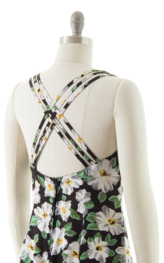 1990s Floral Strappy Mini Skater Dress | small