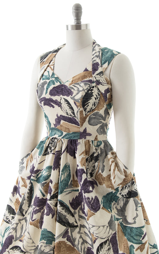1980s Leaf Print Sundress with Pockets | small