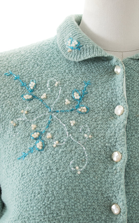 1950s Floral Beaded Wool Cardigan | medium/large