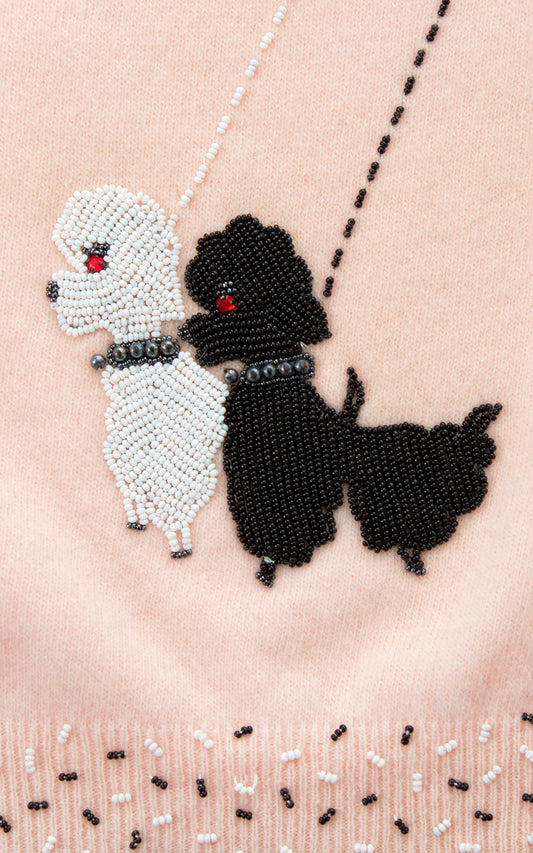 1950s Beaded Poodles Knit Wool Cardigan | medium/large