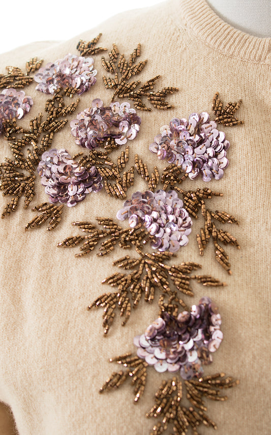 1950s Floral Sequin Beaded Wool-Angora Cardigan | large/x-large