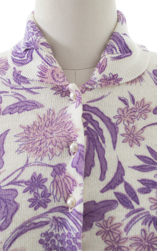 1950s Purple Floral Cardigan | large/x-large