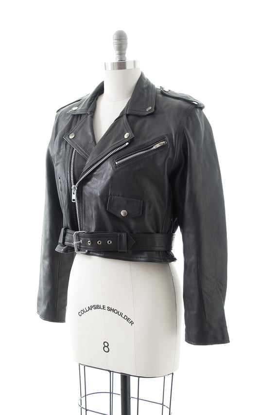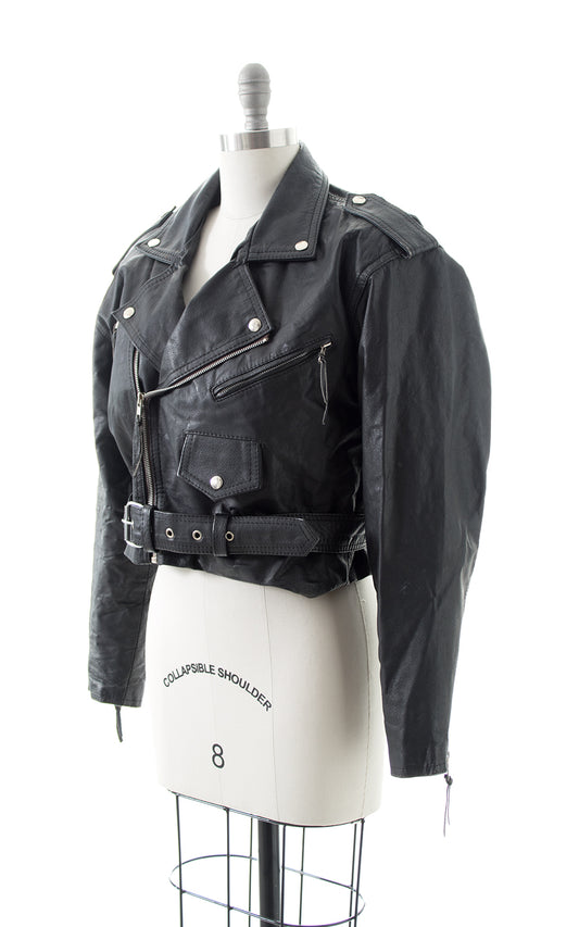 1990s Cropped Leather Moto Jacket | small/medium