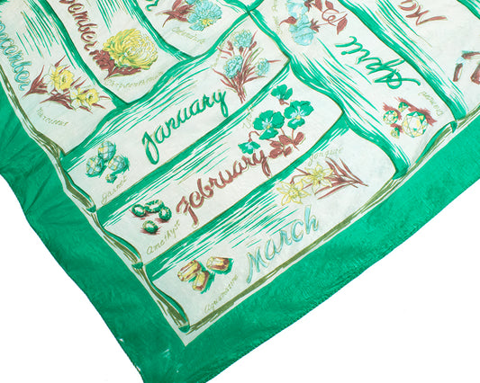 1940s 1950s Birthstone & Monthly Flowers Silk Scarf