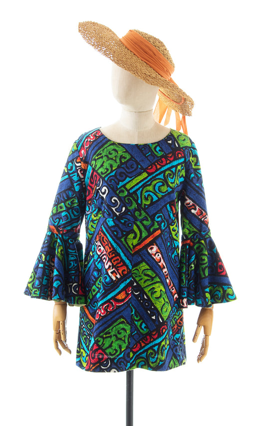 1970s Hawaiian Circle Sleeve Micro Mini Dress | medium
