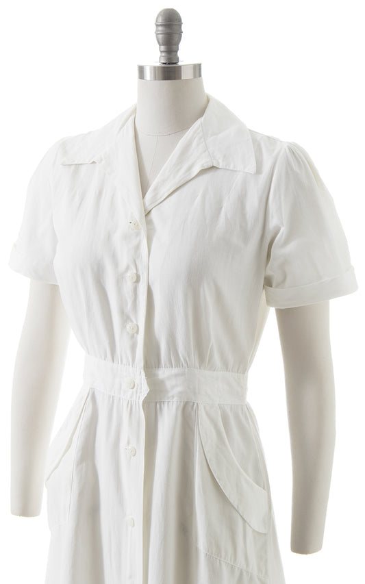 $65 DRESS SALE /// 1940s White Cotton Shirtwaist Dress | medium