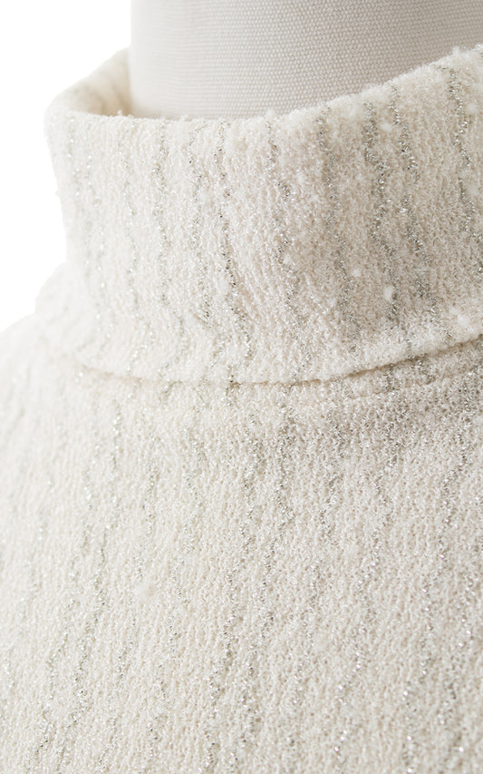 1970s Metallic White Turtleneck Bodysuit | x-small/small