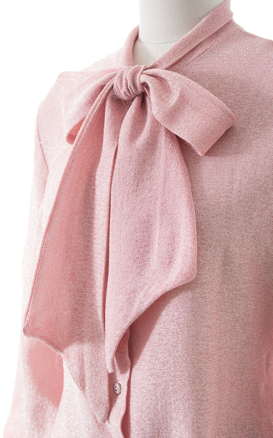 1970s Metallic Pink Pussy Bow Bodysuit | medium