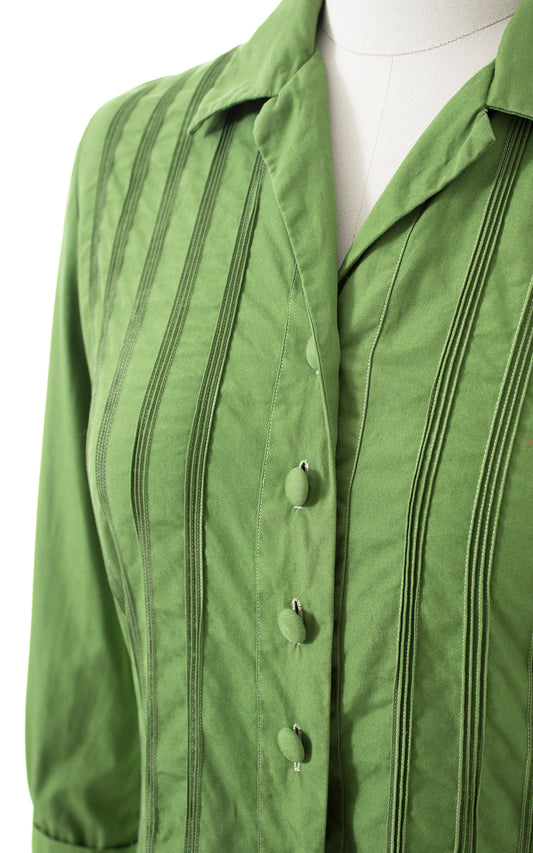 1950s Green Pintuck Cotton Blouse | medium