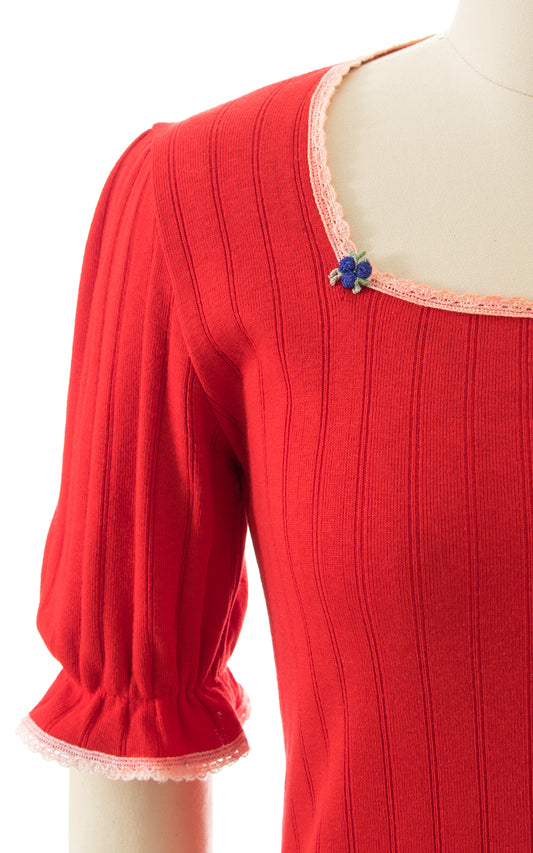 1970s Red Puff Sleeve T-Shirt | x-small/small