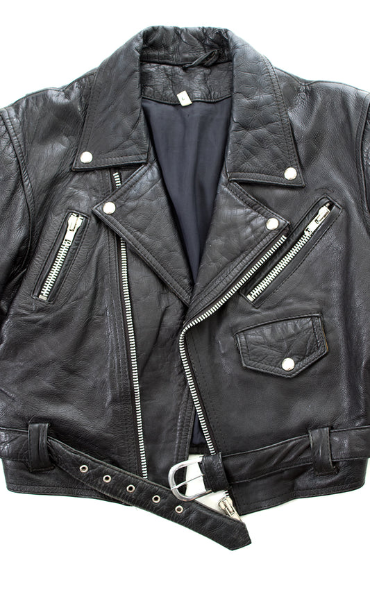 1980s 1990s Black Leather Motorcycle Jacket | medium/large