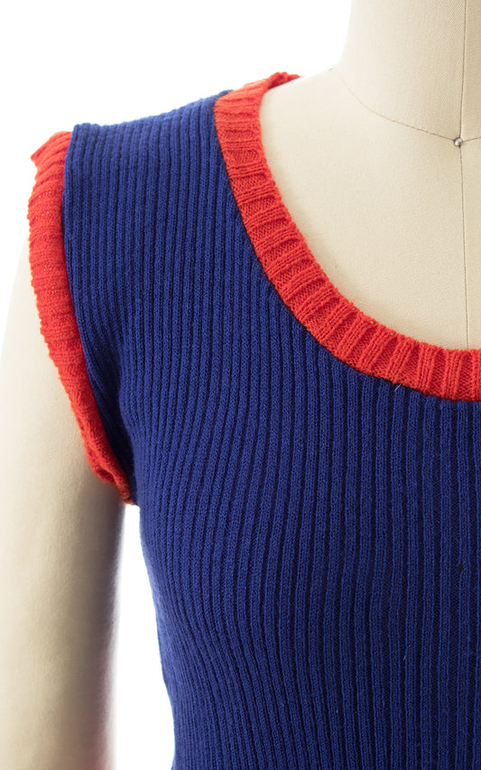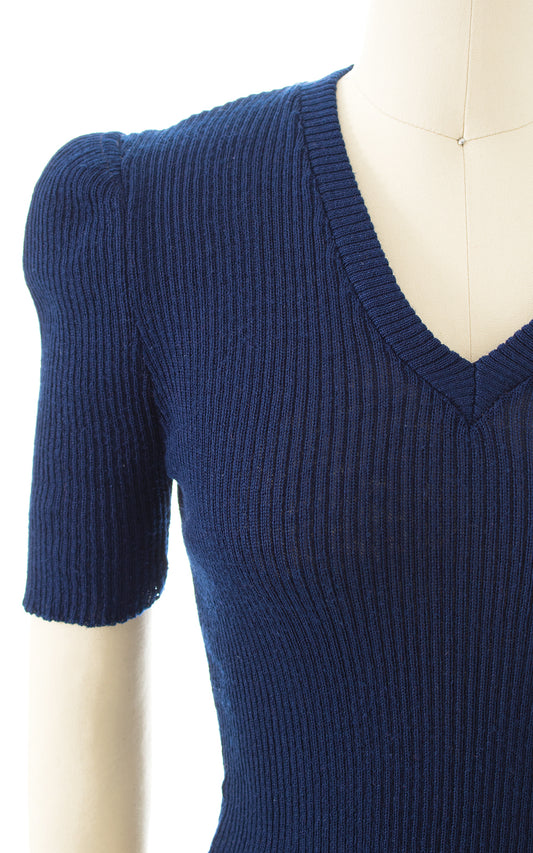 1970s Navy Blue Knit Sweater Top | x-small/small