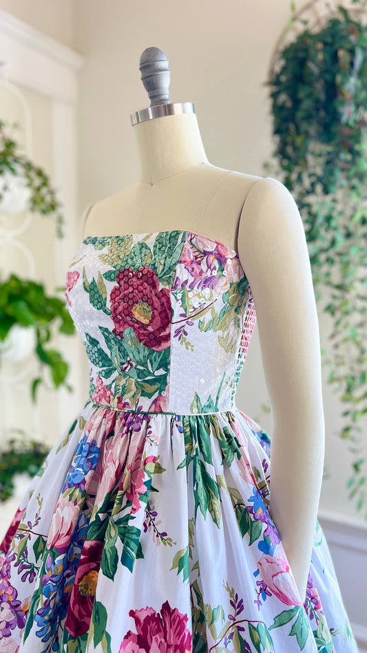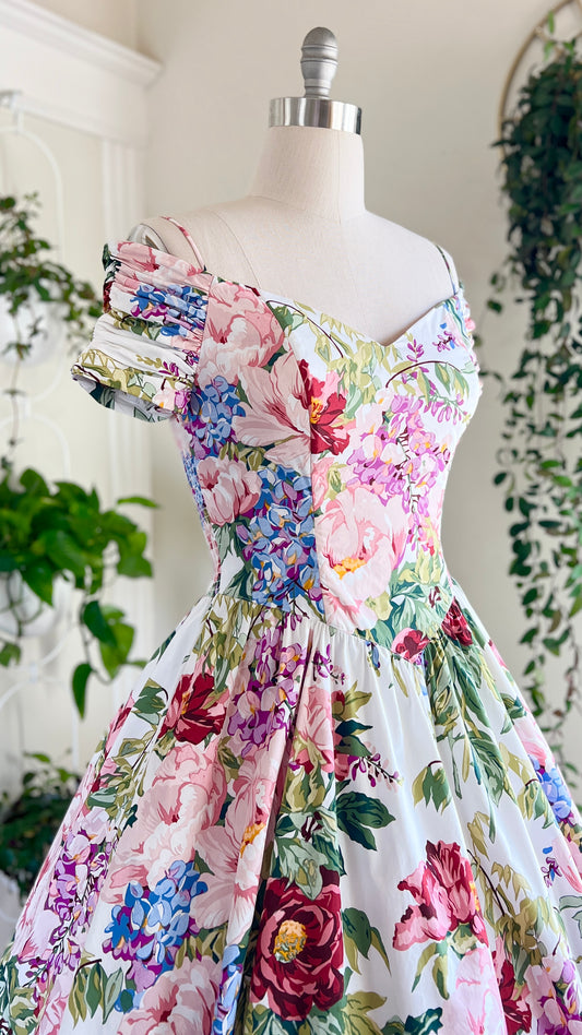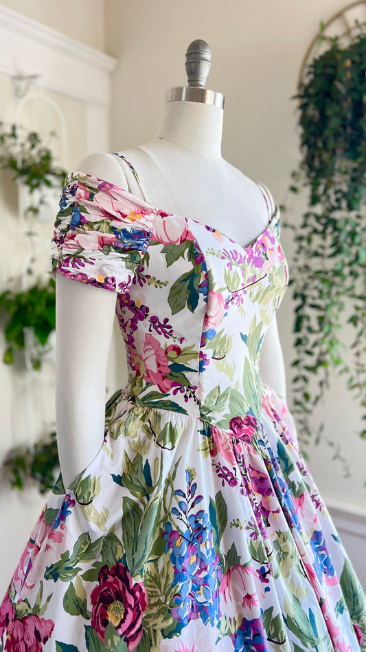 1980s KARIN STEVENS Romantic Floral Dress | small/medium/large