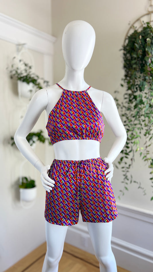 1970s Printed Shorts & Crop Top Set | x-small/small