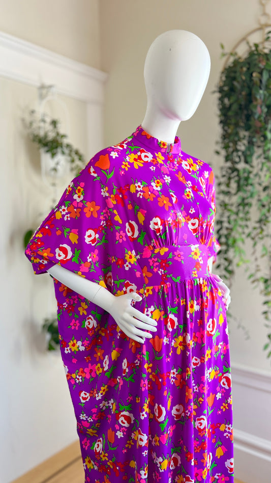 1970s Purple Floral Kaftan | x-small/small/medium/large/x-large
